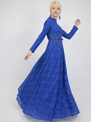 Sew&Design Saks İşlemeli Dantel Abiye Elbise