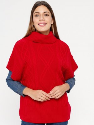 Sementa Kırmızı Boğazlı Triko Panço