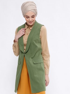 Appleline Haki Şal Yaka Yelek