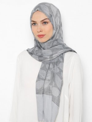 Anna Lucci Gri Yaprak Desenli Pamuk Şal