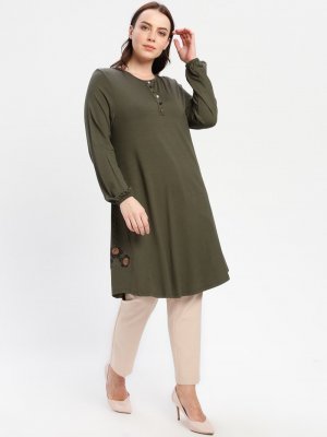PINK APPLE Haki Düğme Detaylı Nakışlı Tunik