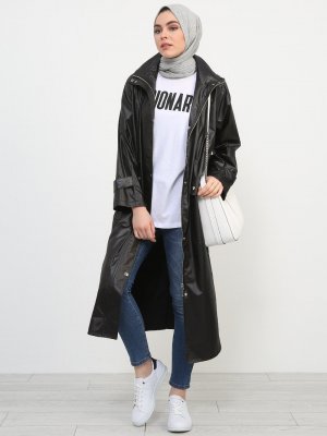 Refka Siyah Çıtçıt Detaylı Trençkot
