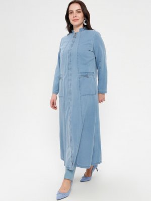 Hanımsa Buz Mavisi Fermuarlı Kot Kap