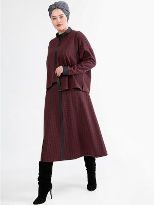 Nesrin Emniyetli Bordo-siyah Kaz Ayağı 2'li Takım