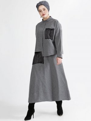 Nesrin Emniyetli Gri 2'li Etek-Bluz Takım