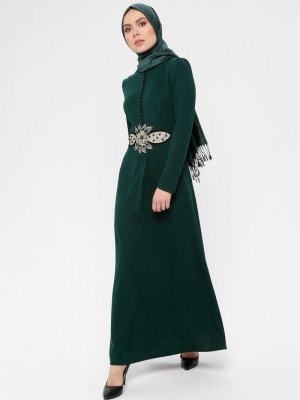 Duru Giyim Yeşil Güpür Detaylı Elbise