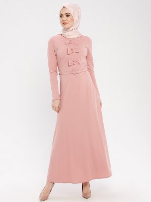 Duru Giyim Pudra Fiyonk Detaylı Kemerli Elbise