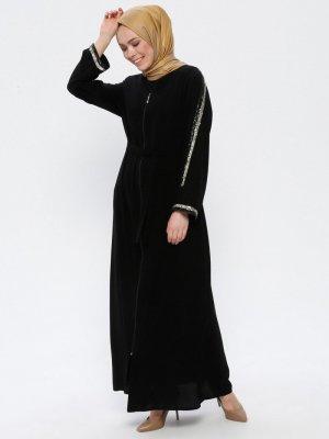 Jamila Siyah Fermuarlı Ferace