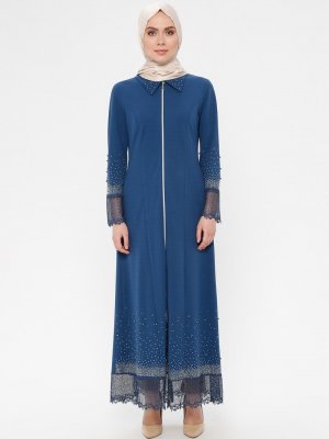 Duru Giyim İndigo Drop Baskılı Dantelli Ferace