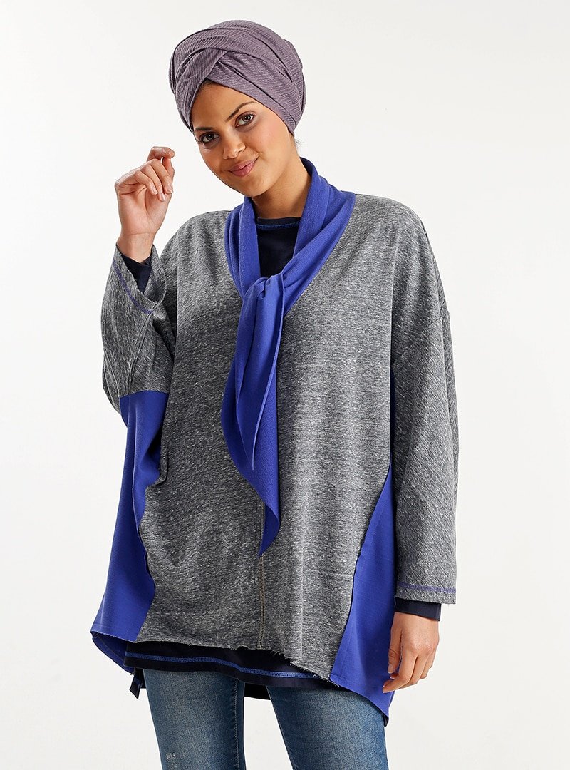 PLİSTRE Gri Bağlama Detaylı Ceket