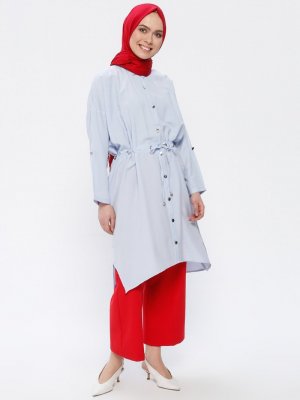 Loreen By Puane Buz Mavisi Düğmeli Beli Bağcıklı Tunik