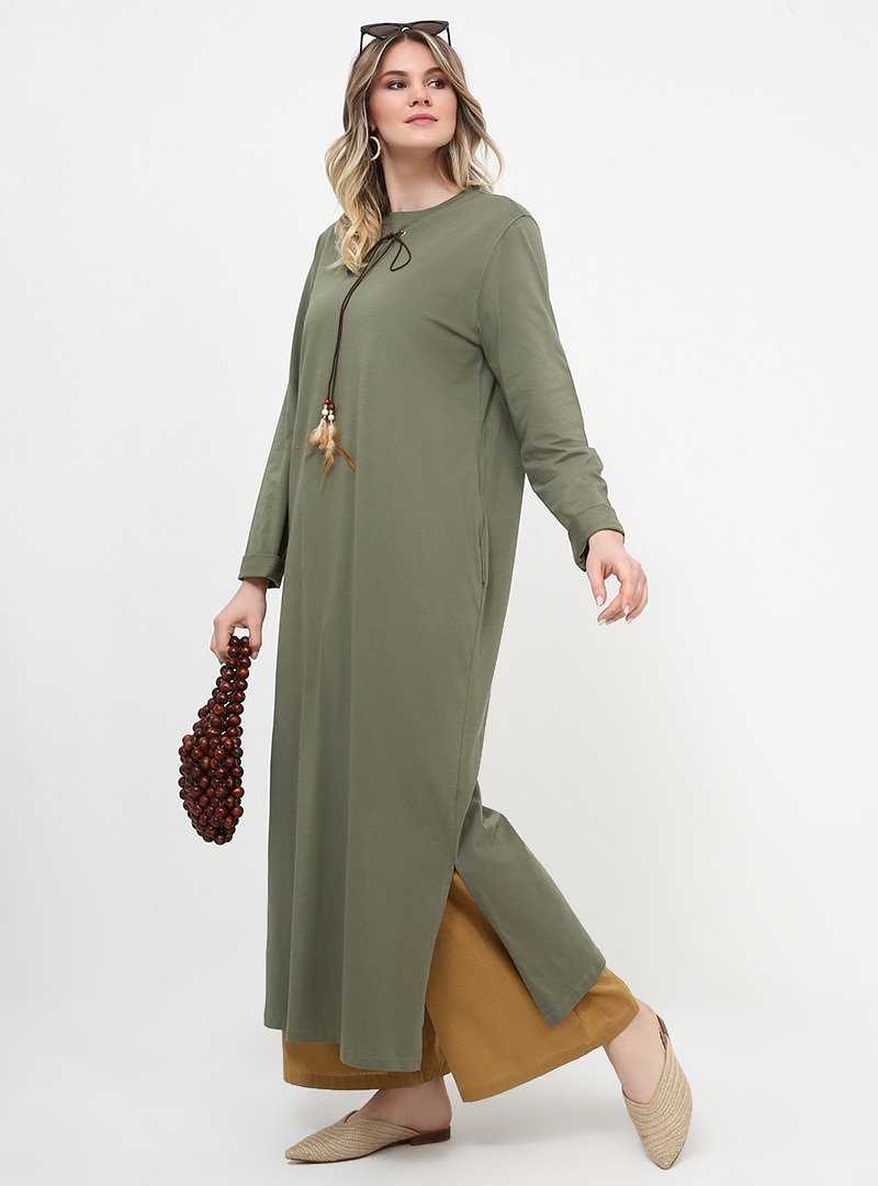 Alia Haki Yakası Bağcıklı Uzun Tunik
