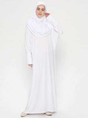 Hal-i Niyaz Beyaz Tek Parça Namaz Elbisesi