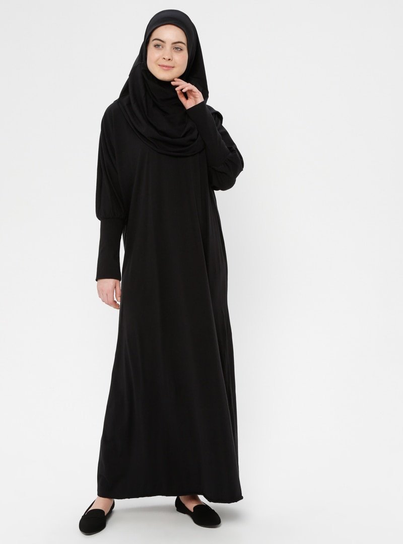 Hal-i Niyaz Siyah Tek Parça Namaz Elbisesi