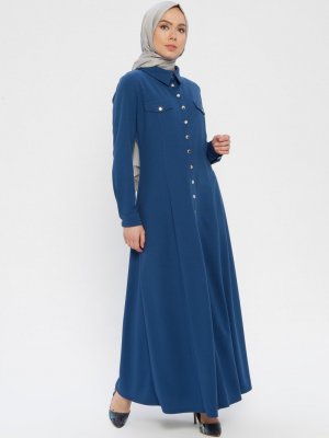 MEKSİLA İndigo Çıtçıtlı Ferace