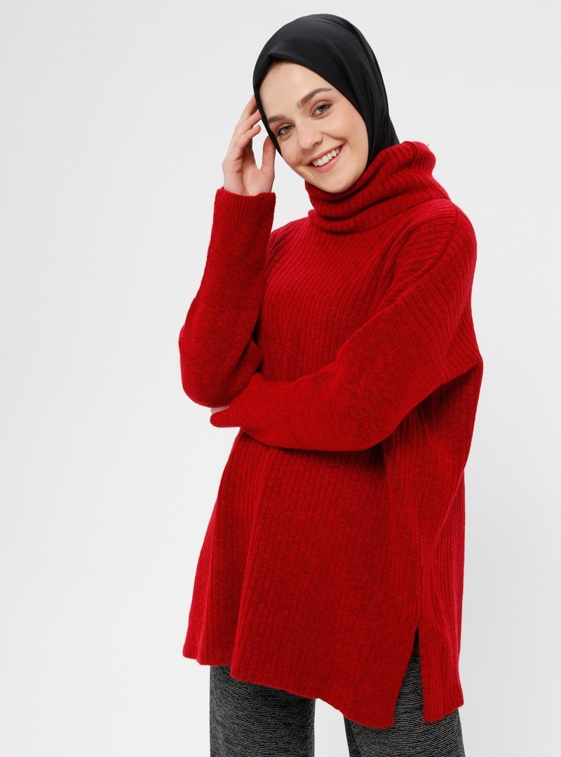 Loreen By Puane Kırmızı Boğazlı Yaka Triko Kazak
