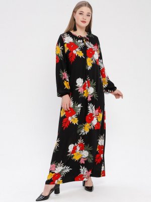 Ginezza Siyah Çiçek Desenli A Pile Elbise