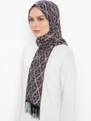 Özsoy Somon Jakarlı Karışık Çizgili Şal