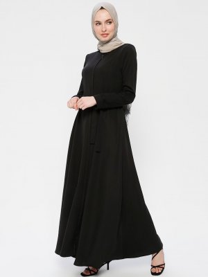 Jamila Siyah Fermuarlı Ferace