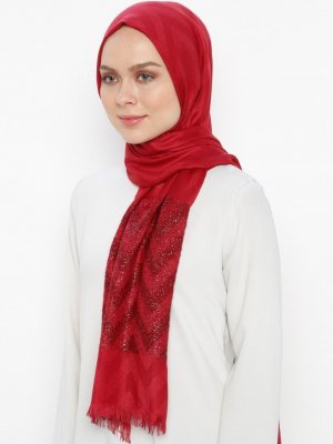 Özsoy Bordo Zikzak Desenli Simli Şal
