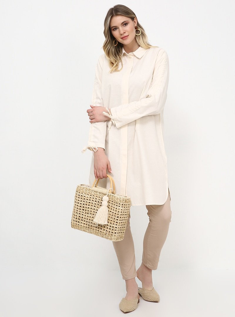 Alia Kırık Beyaz Gizli Düğmeli Tunik