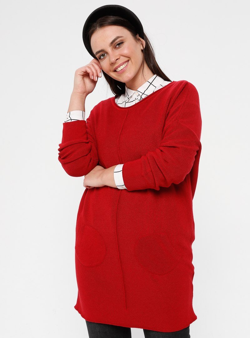 Okçu Kırmızı Triko Tunik