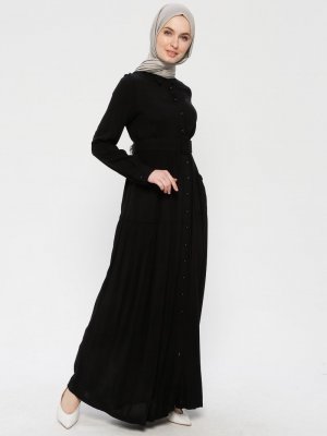 Ginezza Siyah Drop Baskılı Cepli Elbise