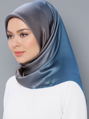 Aker Mavi Düz İpek Krep Saten Eşarp