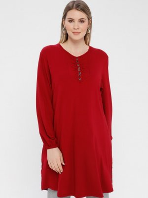 PINK APPLE Bordo Düğme Detaylı Tunik