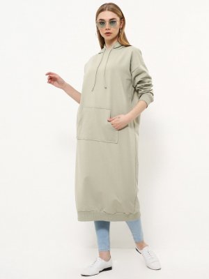 Everyday Basic Kum Kanguru Cepli Kapüşonlu Tunik