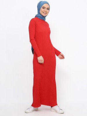 Tavin Kırmızı Bisiklet Yaka Elbise