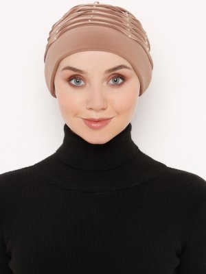 Moda Bone Bej Pileli İncili Bone
