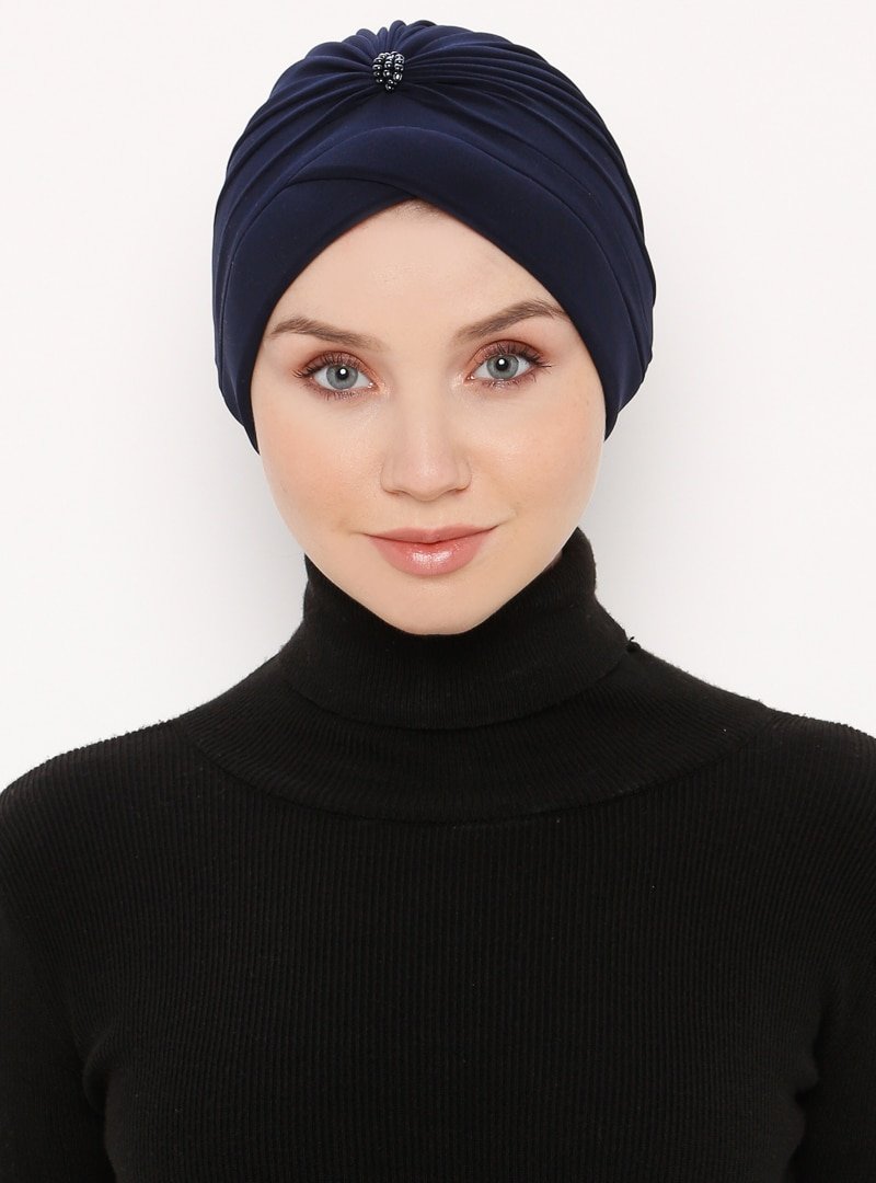 Moda Bone Lacivert Çapraz İncili Bone