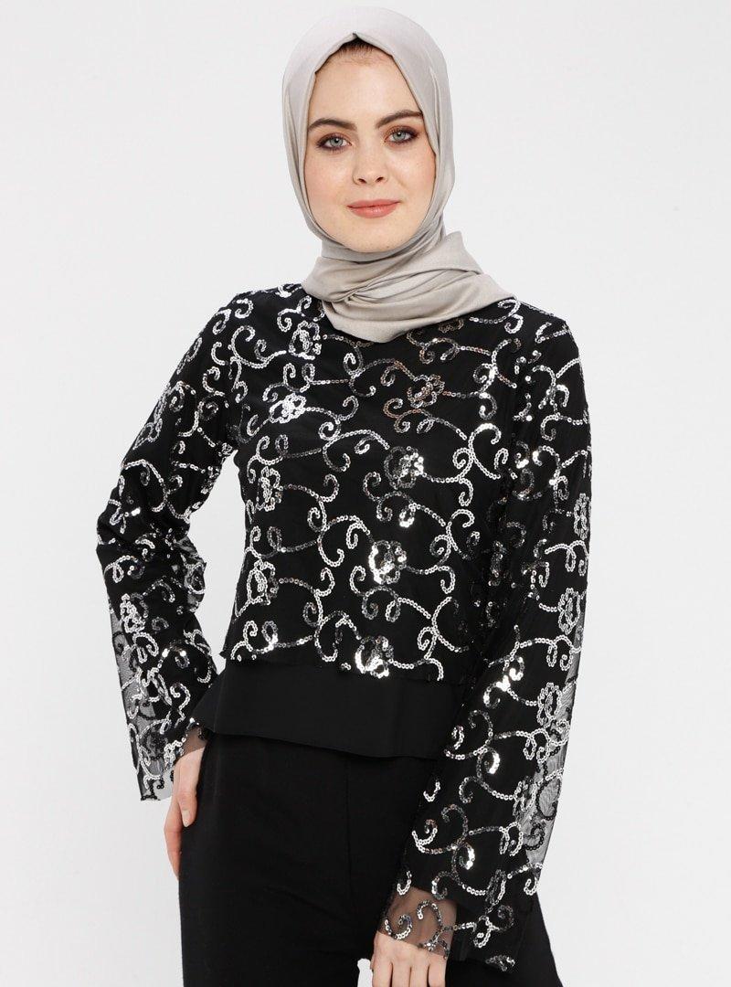 Filizzade Siyah Gümüş Payetli Bluz ürününü devritesettur.com vasıtası ile hızlı ve güvenli bir şekilde Modanisa sitesinden 74.99 TL ödeyerek satın alabilirsiniz.