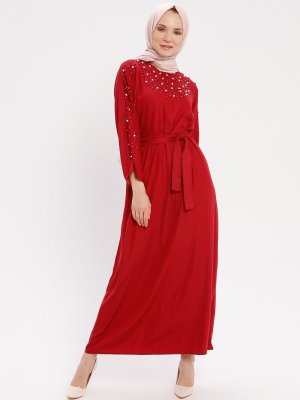 Tuncay Kırmızı İncili Elbise