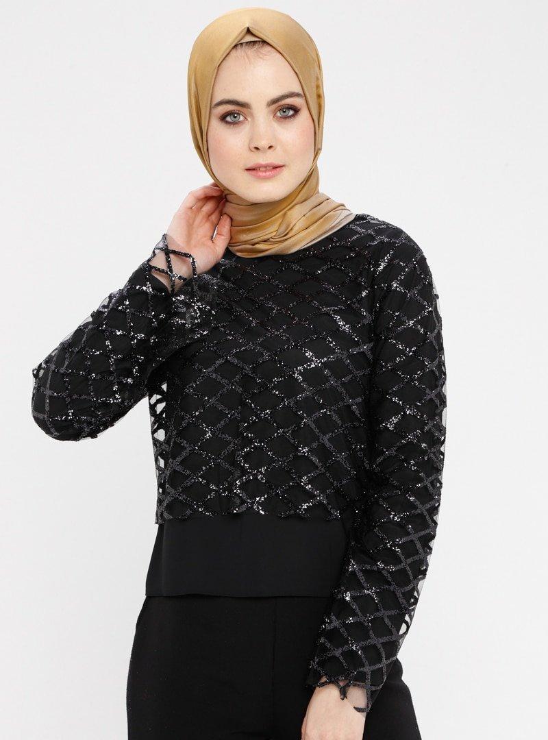Filizzade Siyah Payetli Bluz