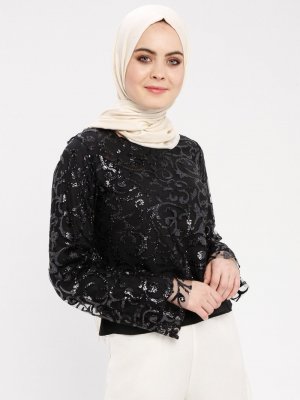 Filizzade Siyah Payetli Bluz