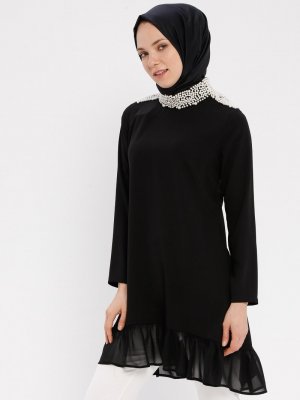 Panaline Siyah Yakası İncili Tunik