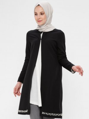 Panaline Siyah İnci Detaylı Tunik
