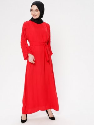 Tuncay Kırmızı İncili Elbise
