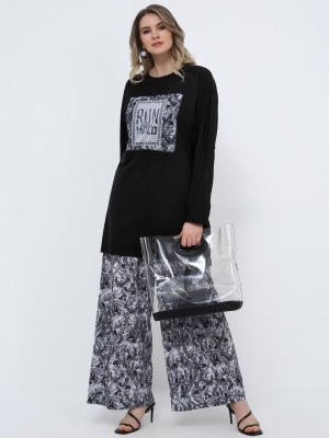 Alia Siyah Doğal Kumaşlı Garnili Tunik