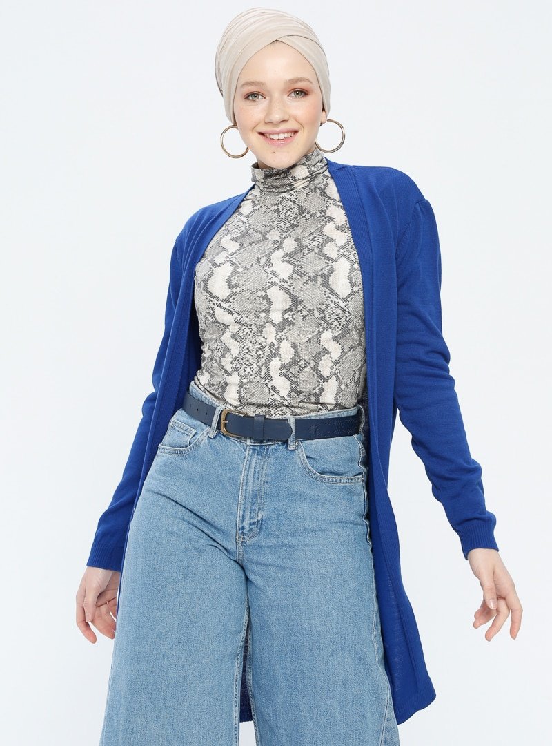 Zentoni Mürekkep Kuşak Detaylı Triko Hırka