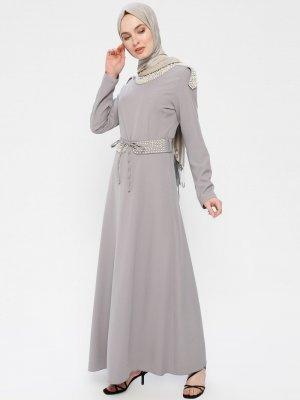 BÜRÜN Gri İnci Detaylı Elbise
