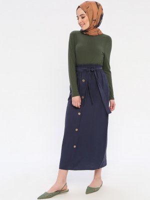 Mia Line Lacivert Düğme Detaylı Etek