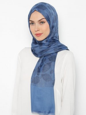 Anna Lucci İndigo Yaprak Desenli Pamuk Şal