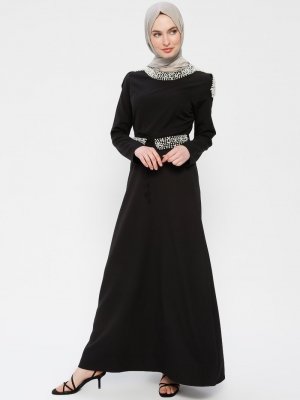 BÜRÜN Siyah İnci Detaylı Elbise