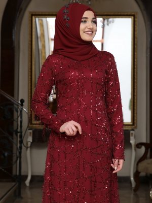 Rana Zenn Bordo Salkım Abiye Elbise