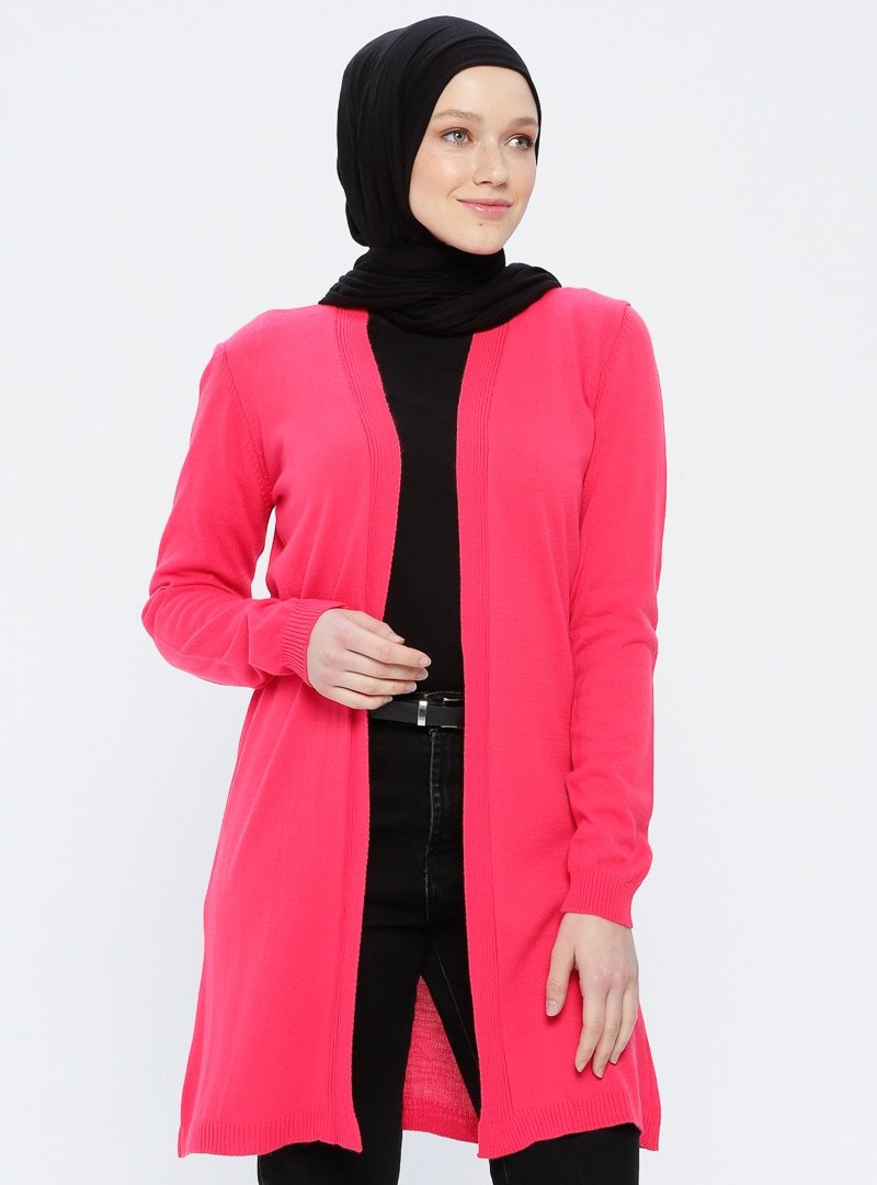 Zentoni Fuşya Kuşak Detaylı Triko Hırka