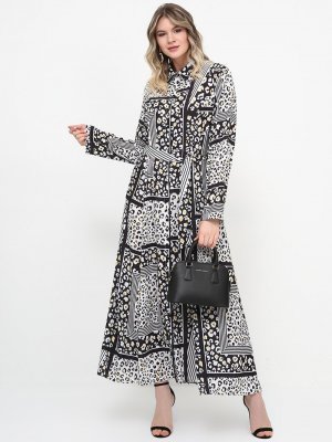 Alia Siyah Beyaz Desenli Elbise