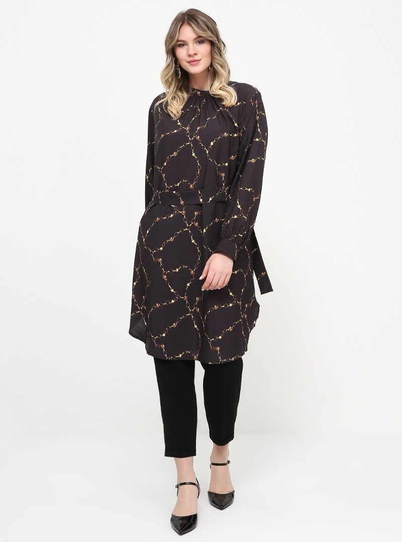 Alia Siyah Zincir Desenli Tunik